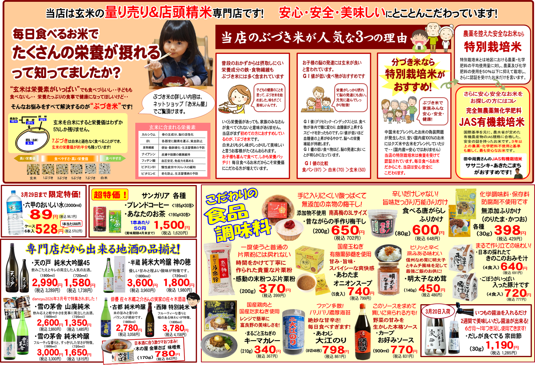 安心安全な特別栽培米は、当店人気ナンバーワン曽我さんの新潟コシヒカリ、滋賀の新品種きらみずき、長野県浅間コシヒカリがお買い得です!